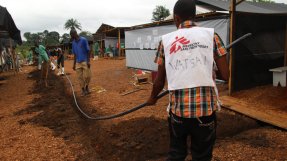 Ett vatten- och sanitetsteam i arbete på vårt ebolacenter i Kailahun, Sierra Leone. Foto: MSF