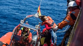 En pojke räddas på Medelhavet av vårt fartyg Prudence i juni 2017. Foto: Andrew McConnell/Panos Pictures