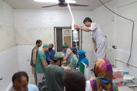 Läkare Utan Gränser har arbetat i Afghanistan sedan 1980, med undantag för åren mellan 2004 och 2009 efter att fem anställda dödades i Badghis-provinsen. 2019 hade Läkare Utan Gränser sju projekt i sex provinser i landet och genomförde över 100 000 konsultationer, bistod vid fler än 60 000 förlossningar och utförde nästan 10 000 kirurgiska ingrepp.