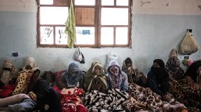 Kvinnor i ett fångläger för flyktingar och migranter i Tripoli, Libyen. Foto: Guillaume Binet