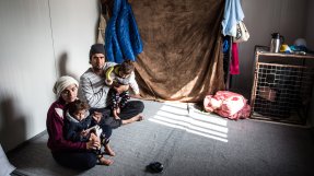 Karon, hans fru och deras tvillingdöttrar har varit fast på Lesbos i över ett år. De Familjen flydde kriget i Irak och Karons enda önskan för framtiden är att hans döttrar ska få växa upp i ett land där det är fred. Foto: Läkare Utan Gränser
