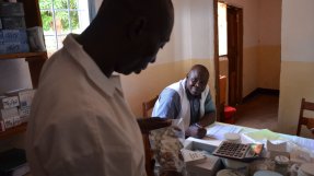Sjuksköterskan Pelé inventerar apoteket på Mbalazime vårdcentral. Bild: Sandra Smiley