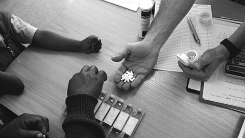 Mediciner som delas ut på vår klinik i Khayelitsha, Sydafrika. Foto: Francesco Zizola/Noor.