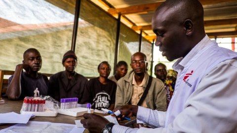 Fred från Läkare Utan Gränser förbereder hivtester på hiv-avdelningen på sjukhuset i Arua, Uganda. Foto: Isabel Corthier