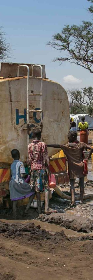 Merparten av vattenförsörjningen i lägret sker fortfarande genom att lastbilar transporterar vatten från olika källor till vattentankar i lägret. Vid varje vattentank väntar sedan människor med sina vattendunkar och köerna ringlar långa. Detta är både kostsamt och tidsödande.