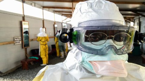 Jonathan Dixon, en av våra sjuksköterskor i Sierra Leone, i full skyddsdräkt. Foto: Fabio Basone/MSF