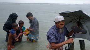 Människor på flykt från Myanmar anländer till Bangladesh, september 2017. Foto: Antiono Faccilongo