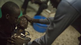 Kume, 3 år, har testat positivt för malaria. Han hade 39,7 graders feber när hans föräldrar kom till sjukhuset i at Bentiu, South Sudan. Foto: Brendan Bannon
