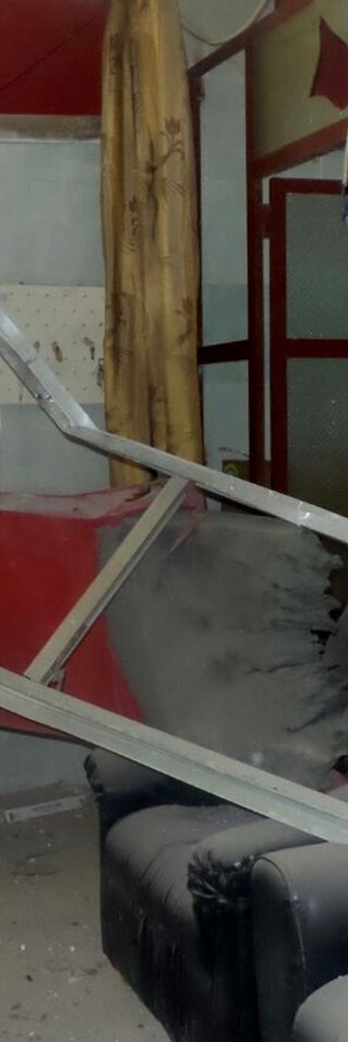 – Jag var på väg till sjukhuset för att hjälpa människor som skadats i bombräderna. Men så fort jag kom fram till sjukhuset blev jag själv skadad. Allt hände väldigt snabbt. Jag såg något som såg ut som en explosion och ett ljussken, sen förlorade jag medvetandet i fem minuter. Mina kollegor såg mig ligga blödandes på marken och hjälpte mig, berättar en av de anställda vid Tafas-sjukhuset.