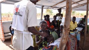 Ett barn får behandling för undernäring på vår mobila klinik i flyktinglägret Bidi Bidi i Uganda. Foto: Charlotte Morris/Läkare Utan Gränser