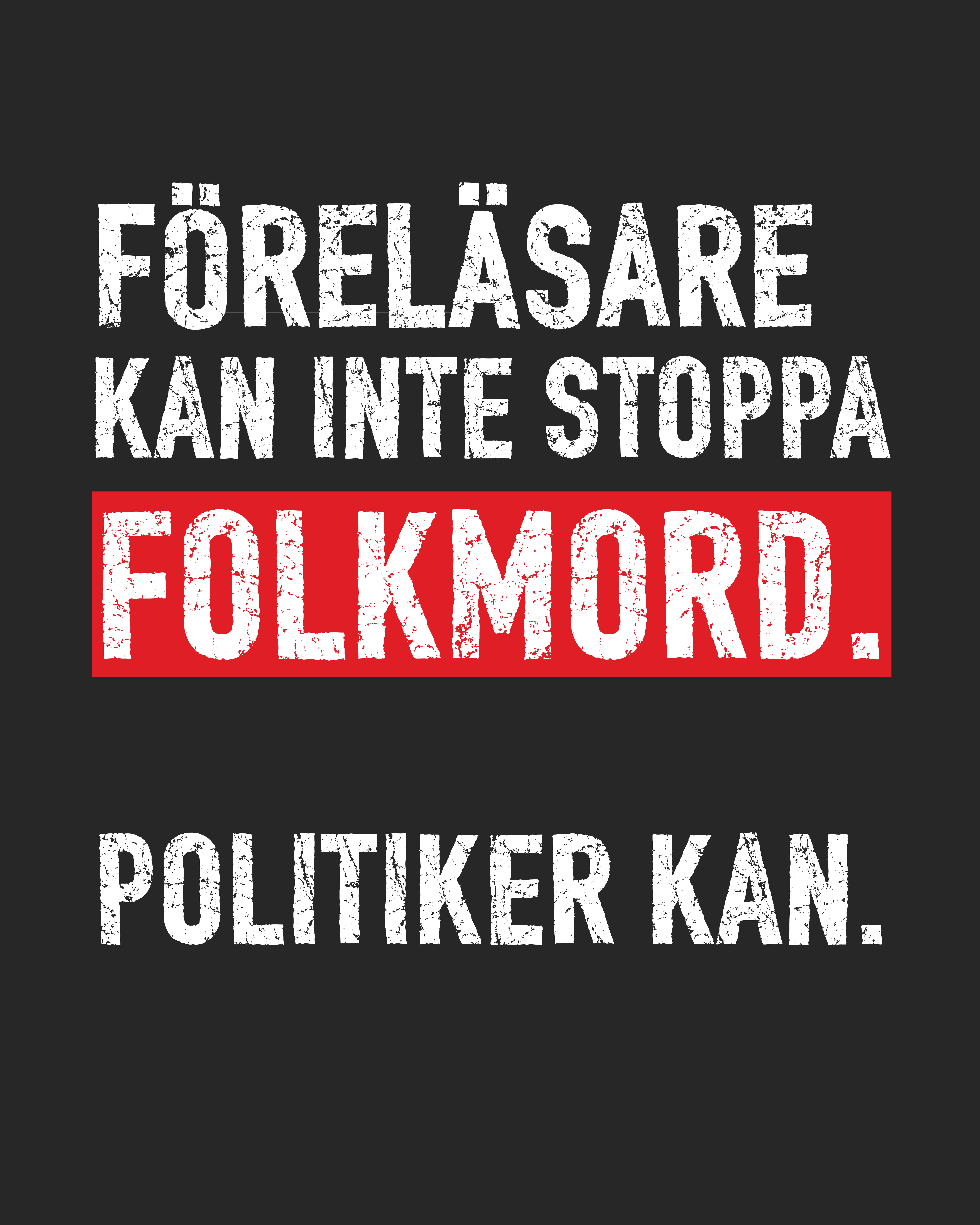 Du kan inte stoppa folkmord vare sig du är förskollärare, poddare eller mellanchef. Politiker kan. Hjälp oss kräva politiskt ansvar att stoppa folkmordet i Gaza. Ladda ner din egen bild och dela i sociala medier.